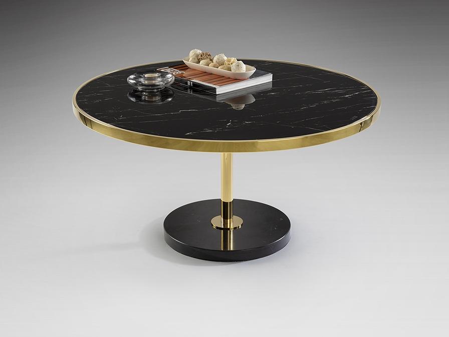 Журнальный столик из нержавеющей стали, позолоченная отделка. Основание из