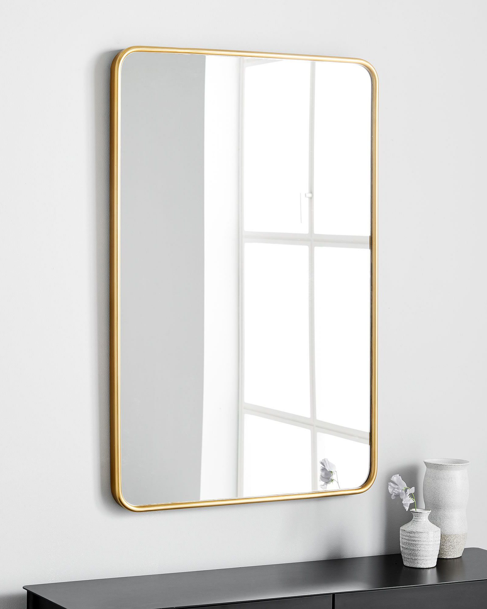 Зеркало в золотой раме «Теони» — это идеальное дополнение к вашему интерьеру. Прямоугольная форма этого металлического зеркала с закругленными краями создает современный и сдержанный вид, который легко впишется в любую комнату. Это настенное зеркало является отличным выбором для прихожей или ванной. Цвет рамы выполненный из золотистой потали, которое придает зеркалу придаёт зеркалу слегка состаренный эффект. Оно часто используется в прихожих, где может быть использовано для проверки своего внешнего вида перед выходом из дома. Зеркало также прекрасно подходит для ванной комнаты, особенно над раковиной. Оно не только функционально, позволяя вам удобно просматривать свое отражение, но и прекрасно дополнит дизайн ванной комнаты своим стильным и современным видом. Установка данного зеркала осуществляется только вертикально.