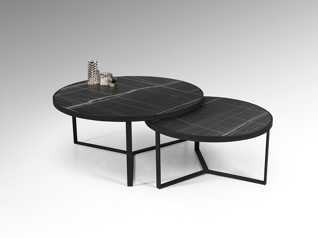 Комплект приставных столиков из металла черного матового цвета. Столешница