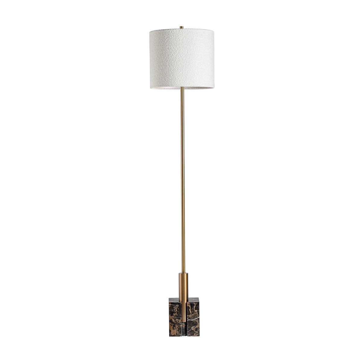 Напольный светильник в стиле ар-деко, выполненный из черного мрамора в сочетании с золотистым железом и кремовым полиэстером. Изделие разборное.