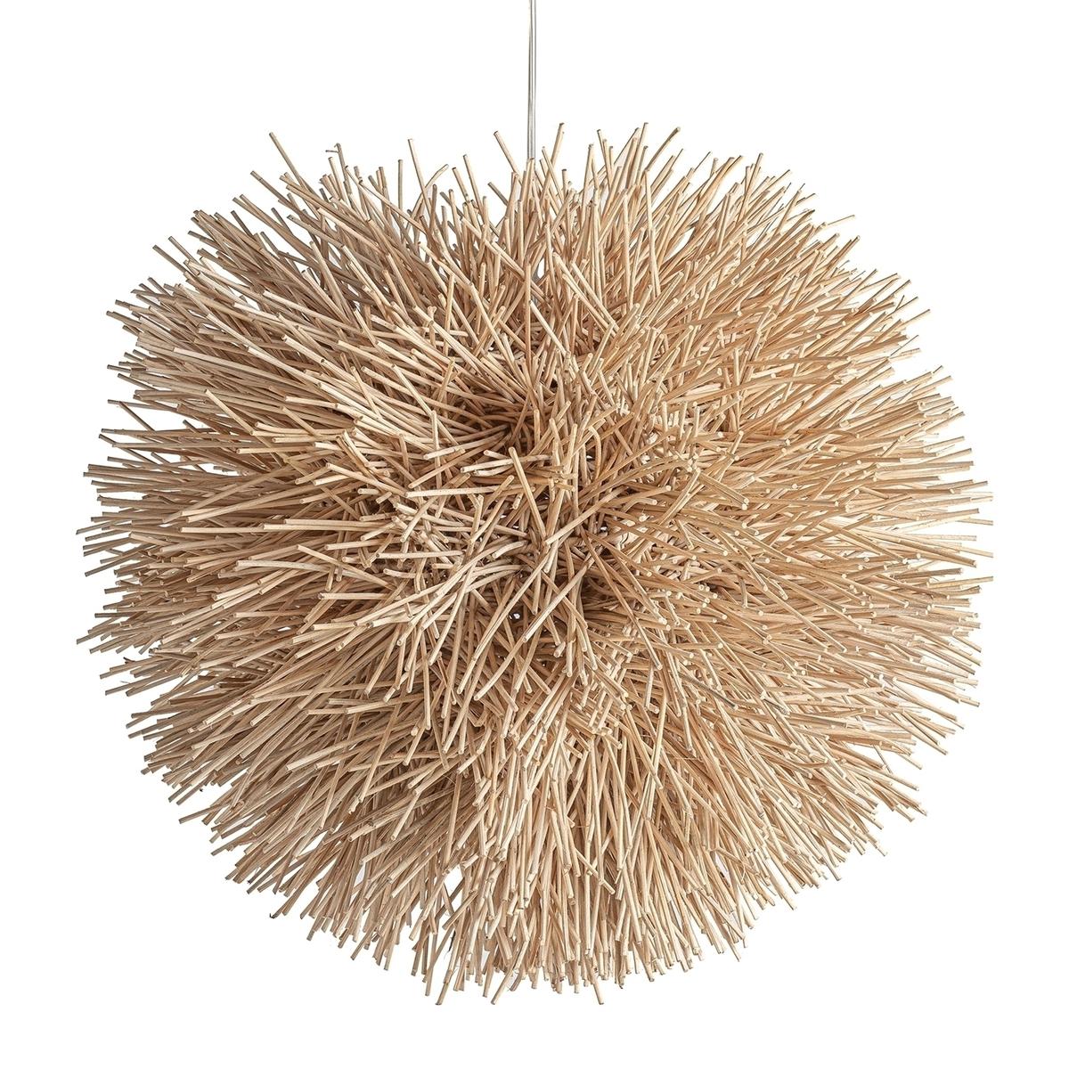 Подвесной светильник коричневого цвета в стиле бохо. Изготовлен из ротанга.