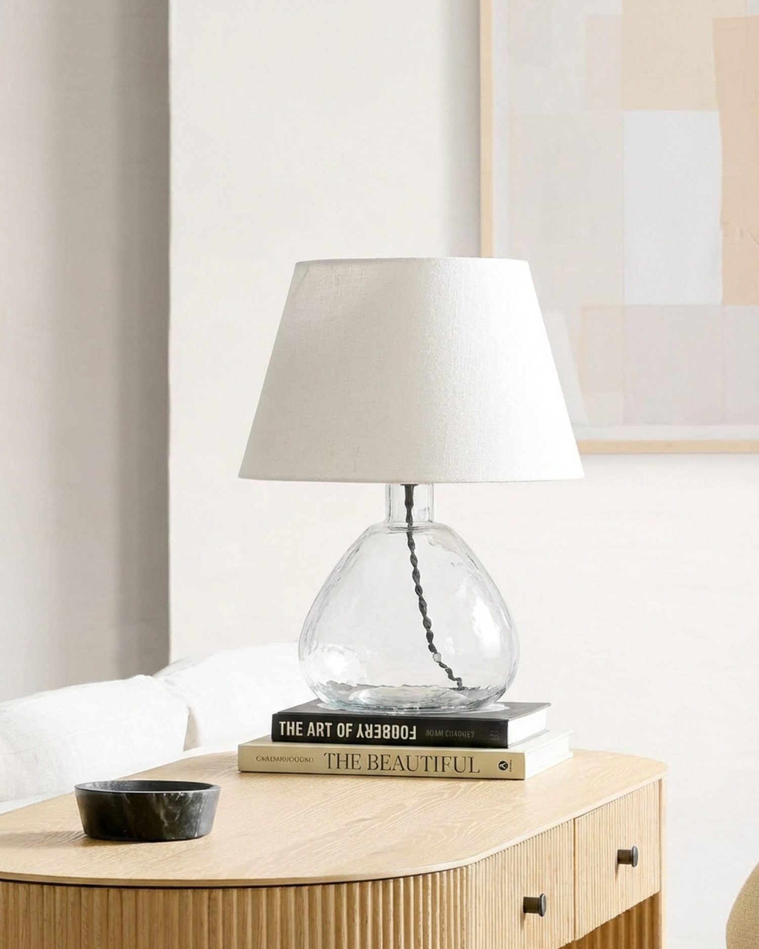 Прозрачная настольная лампа «Дэми» с чёрным проводом — это изящный акцент, который придаёт интерьеру лёгкость и свежесть. Прозрачная стеклянная лампа мягко отражает свет и окружающую обстановку, создавая ощущение воздушности. Верх украшен конусообразным льняным абажуром, который равномерно рассеивает свет, наполняя пространство мягким и уютным освещением. Абажур придаёт лампе современный и элегантный вид, делая её идеальным дополнением для прикроватной тумбы, консоли или рабочего стола. Прозрачное стекло в сочетании с натуральной текстурой льна гармонично вписывается в современные, минималистичные и скандинавские интерьеры, добавляя комнате изысканности и визуальной лёгкости.