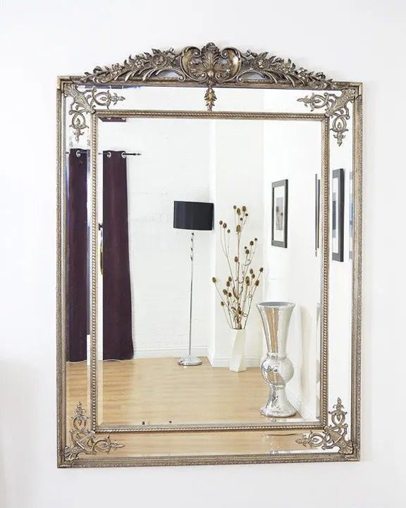 Серебряное зеркало в полный рост «Дилан» — это изысканный декор, который станет неотъемлемой частью интерьера вашего дома. Это широкое зеркало в полный рост в серебристом цвете обладает роскошным дизайном, который непременно привлечет восхищенные взгляды гостей. Центральный элемент зеркала — богато украшенная гребенчатая корона, которая придает ему изысканный и роскошный вид. Каждый угол зеркала украшен красивыми завитками, что добавляет ему элегантности и изыска. Эти детали делают зеркало «Дилан» уникальным и привлекательным. В общей сложности зеркало имеет пять прямоугольных зеркальных областей вокруг центрального отражающего полотна, каждая из которых обрамлена фацетной кромкой. Это увеличивает эффект отражения света и создает игру света и тени, добавляя глубину и объем помещению, в котором находится зеркало. Серебряное зеркало в полный рост «Дилан» не только отлично выполняет свою функцию, позволяя вам рассматривать себя в полный рост, но и становится изысканным украшением для вашего интерьера. Его дизайн идеально подходит для современных, французских и традиционных стилей декора, подчеркивая роскошь и шарм помещения. Это зеркало будет прекрасным дополнением к спальне, гостиной, прихожей или даже ванной комнате, придавая помещению особую изысканность и стиль.