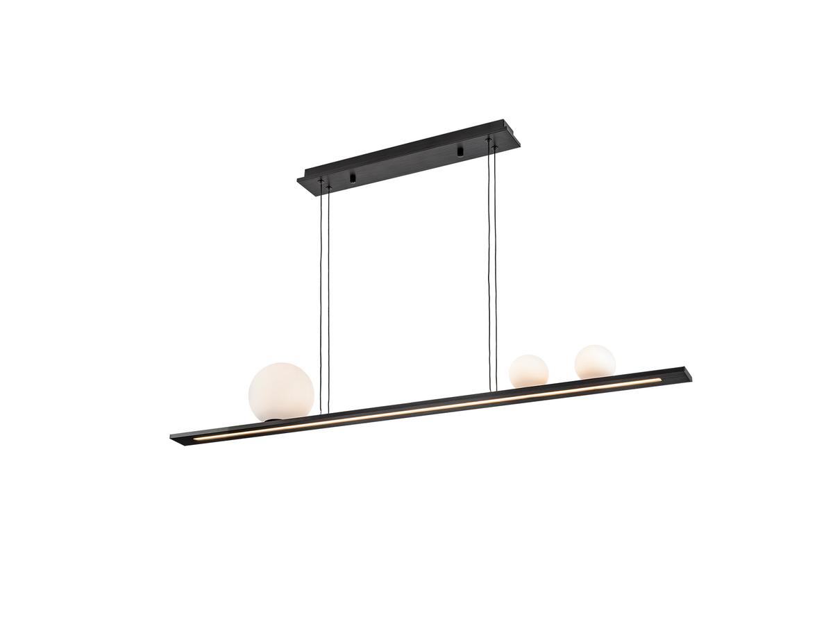 Лампа из матового алюминия, черная отделка. 3 сферических стеклянных