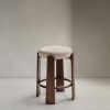 • Granite Полубарный табурет из бежевого шенилла и массива ясеня в отделке орех 65 см