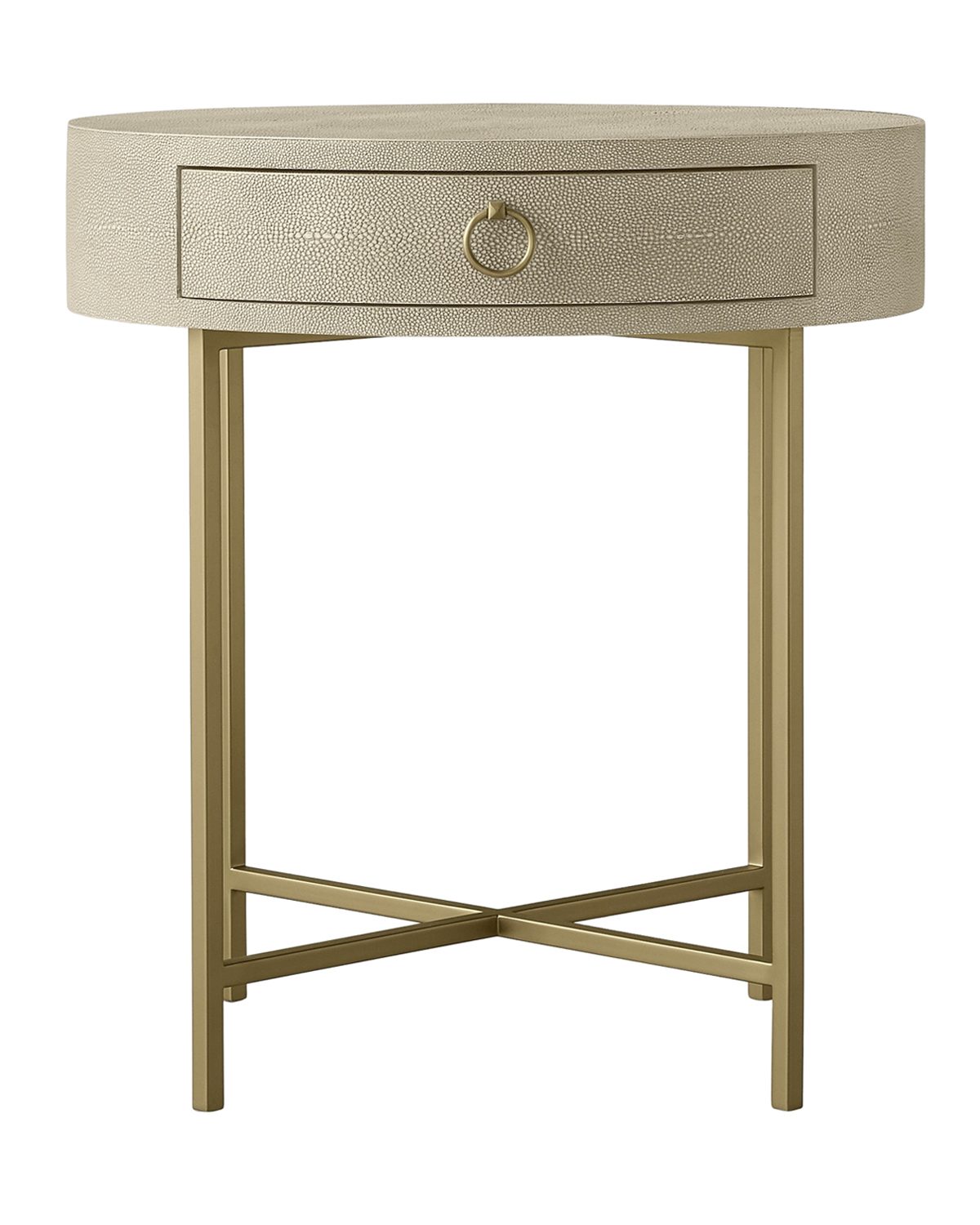 Бежевая прикроватная тумба «Айрин” – стильное и элегантное решение для вашей спальни. Ее сдержанные формы и изысканные детали делают ее идеальным дополнением к любому интерьеру. Тумба имеет круглую столешницу, которая целиком отделана бежевой кожей с точным воспроизведением текстуры и рисунка натуральной шкуры ската. Это добавляет изделию оригинальности и вневременного стиля. Ножки в тёплой цветовой гамме – латунь, придают тумбе изысканный и завершающий штрих. Эта тумба не только эстетически привлекательна, но и функциональна. Она предлагает удобное пространство для хранения рядом с вашей кроватью. Вы можете разместить на ней светильник, будильник, книгу или другие предметы, которые вы хотите иметь под рукой во время сна или перед сном. Бежевая прикроватная тумба «Айрин» также будет идеально сочетается с другими предметами мебели в вашей спальне. Ее нейтральный цвет и классический дизайн позволяют легко интегрировать ее в любой интерьерный стиль.