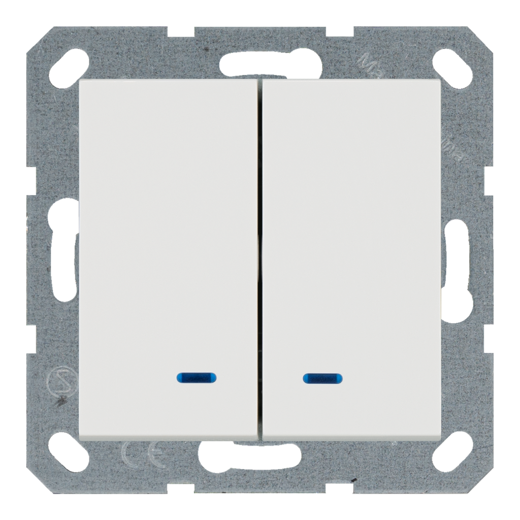 Выключатель 2-клавишный 10A с LED-подсветкой с клавишами — G (белый глянцевый)
