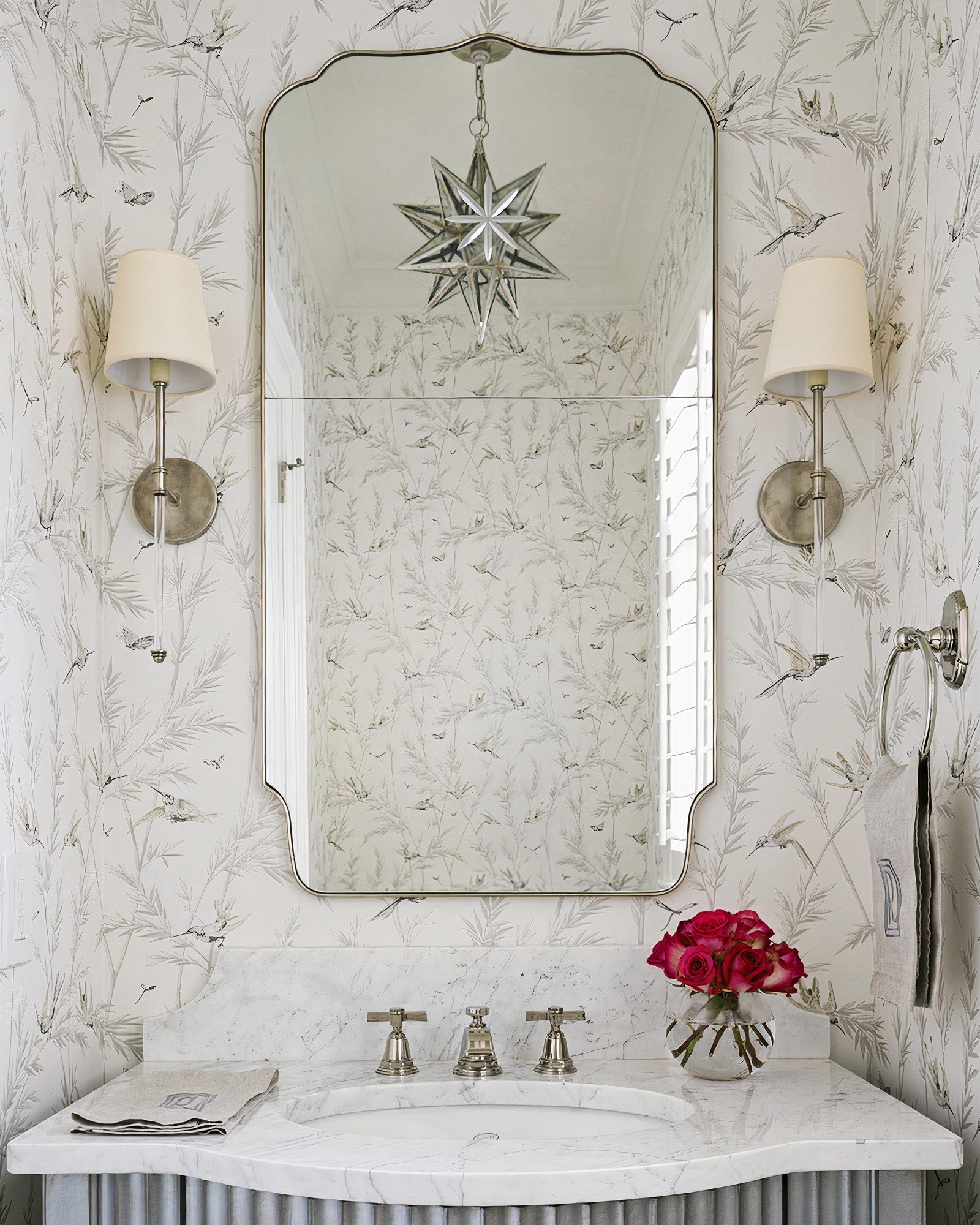Зеркало в серебряной раме «Тартюф» — это изысканное дополнение к вашей комнате, которое привнесет элегантности и стиля. Это настенное зеркало имеет тонкую раму никелированного цвета, которая добавляет дополнительную привлекательность к этому уникальному предмету интерьера. Особенностью этого зеркала является выгравированная звезда в верхней части зеркала, которая придает ему уникальную особенность. Эта деталь делает этот предмет интерьера еще более привлекательным для глаза. Зеркала настенного типа являются важным элементом во многих домах, и это зеркало «Тартюф» обновляет классический стиль «трюмо» в свежий и современный взгляд. Оно совмещает в себе классическую элегантность и современные акценты, чтобы создать уникальную и привлекательную атмосферу в вашем доме. Зеркалом «Тартюф» станет прекрасным украшением вашей спальни, гостиной, ванной или прихожей. Зеркало «Тартюф» идеально сочетается со многими стилями интерьера, будь то классический или современный. Его нежная рама никелированного цвета и изысканное зеркало подарят вашему интерьеру утонченность и стиль.