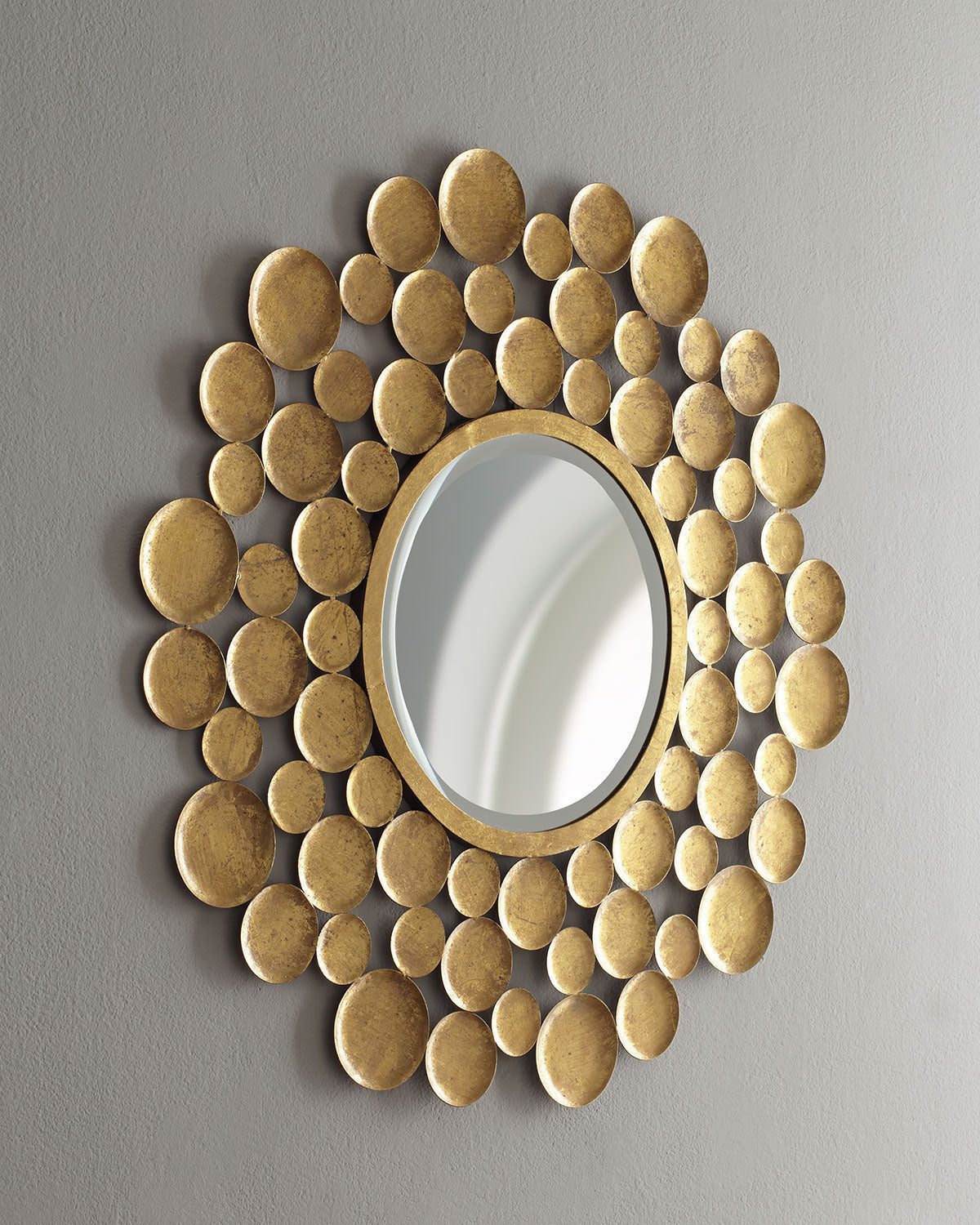 Зеркало интерьерное круглое «Вирджиния» — это стильный предмет декора, который привнесет оригинальность в ваш дом. Уникальная рама, составленная из множества металлических дисков различных размеров, придает этому зеркалу особый вид. Это зеркало подойдет для любого интерьера: его универсальный дизайн позволит использовать его как в современных, так и в классических помещениях. Поместите его в спальню, гостиную, прихожую или любое другое помещение, которое нуждается в дополнительном элементе декора, способном добавить характера. Зеркало также может визуально увеличить пространство и добавить света, особенно в небольших комнатах.