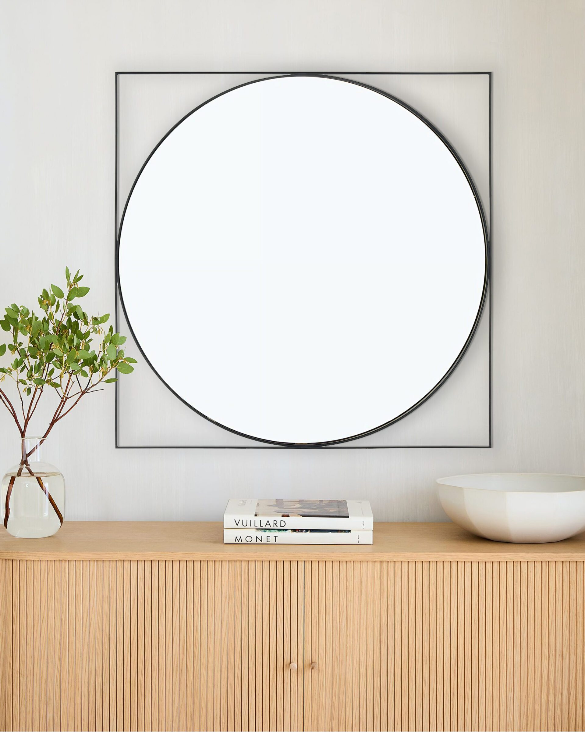 Зеркало настенное в раме «Минклер» — это прекрасное дополнение к любому интерьеру в современном стиле. Оно имеет дизайн, который наверняка привлечет внимание и станет фаворитом на долгие годы благодаря своей прочной металлической конструкции и строгой черной отделке. Круглое зеркальное полотно имеет большой диаметр — 98,1 см., что позволяет ему не только выполнять свою основную функцию, но и визуально расширить пространство в комнате. В то же время его тонкая внешняя квадратная металлическая рама придает ему легкость и изящность. Зеркало можно использовать во многих комнатах вашего дома. Оно идеально подходит для прихожей, где вы сможете быстро и удобно проверить свое отражение перед выходом из дома. Кроме того, оно будет прекрасно смотреться в спальне, где вы сможете насладиться полным видом себя перед выходом на работу. И, конечно же, оно особенно украсит вашу гостиную, станет центральным элементом декора, привлекающим внимание гостей. Особенностью зеркала «Минклер» является его долговечность. Благодаря прочной металлической конструкции оно прослужит вам много лет. Кроме того, его черная отделка придает ему шикарный вид, который подчеркнет стиль вашего интерьера. Зеркало настенное в раме «Минклер» — это простое и стильное решение для вашего дома.