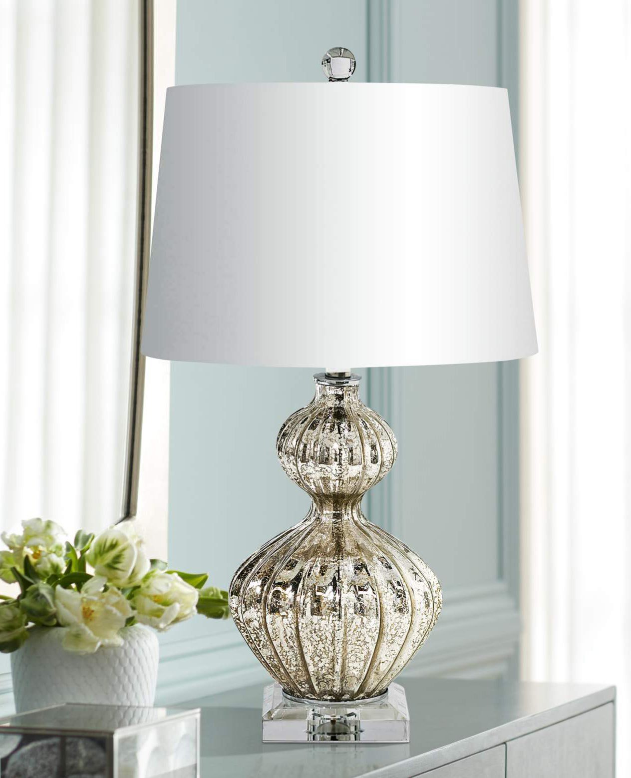 Настольная лампа “Майра” – это идеальное дополнение к вашему интерьеру, придавая ему утонченность и стиль. Ее изысканный рифленый силуэт, выполненный в зеркальном цвете, является не только функциональной осветительной частью, но и элементом декора, который привнесет особый вид в любое помещение. Основание лампы выполнено из стекла, что придает ей легкость и изящность. Абажур лампы “Майра” выполнен в белом цвете, что придает освещению мягкость и создает приятную атмосферу в комнате. Он отлично рассеивает свет, обеспечивая равномерную освещенность помещения и при этом не ослепляя глаза. Благодаря своему дизайну и цветовой гамме, эта лампа идеально подойдет для интерьера, где преобладают белые и нежные оттенки. Привлекательная комбинация ртутного оттенка основания и белого абажура создает впечатление прибрежной палитры. Лампа “Майра” не только осветит вашу комнату естественным светом, но и станет центром внимания благодаря своему утонченному дизайну.