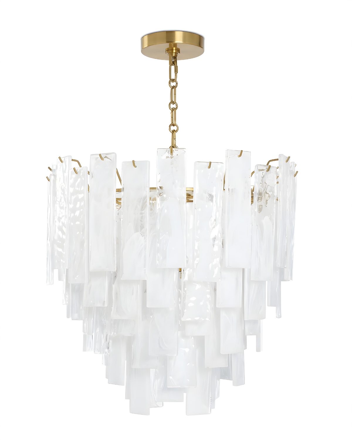 Золотая люстра «Рейнар» — это светильник представляет собой композицию из пяти ярусов прозрачных стеклянных пластин, аккуратно собранных вместе, создавая впечатляющий эффект динамичного движения. Главной особенностью люстры «Рейнар» является использование волнистого стекла, которое не только прекрасно рассеивает свет, но и придает особую мягкость светящемуся эффекту. Это делает освещение помещения более приятным и уютным, создавая атмосферу тепла и комфорта. Отделка в цветовой гамме — латунь, добавляет изысканности и стиля этой люстре. Золотистый в сочетании с прозрачностью стекла создает игру света и тени, что придает интерьеру особую глубину и изысканность. Размеры и форма люстры «Рейнар» делают ее идеальным выбором для различных помещений. Ее прекрасно можно установить в прихожей, создавая великолепный первый впечатление для гостей, или в гостиной, чтобы придать пространству элегантный и изысканный вид.