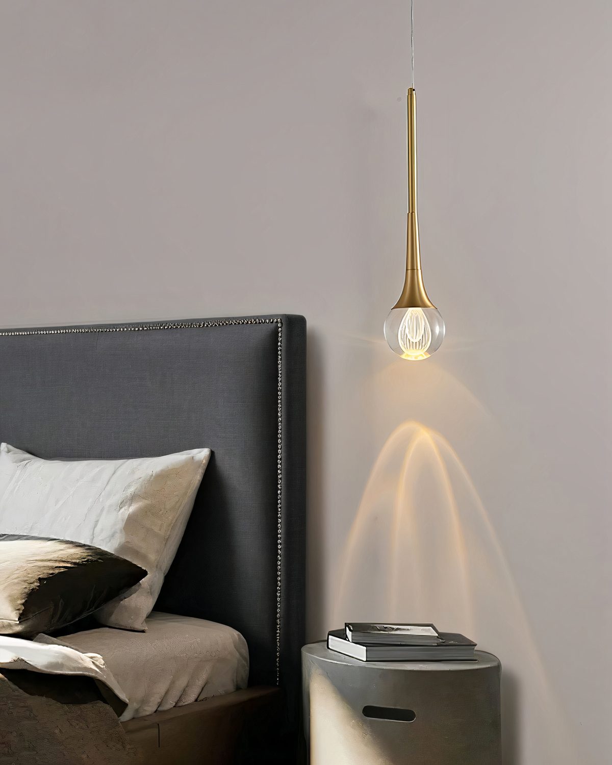 Золотой подвесной светильник «Дольф» — это предмет декора, который сочетает в себе стиль и функциональность. Этот светильник создан для того, чтобы преобразить любое помещение и придать ему особую атмосферу благодаря своему уникальному дизайну и качественным материалам. Основой этого светильника является стеклянная капля, которая скрывает внутри себя светодиодную лампу. Свет, исходящий из источника, преломляется и рассеивается через стекло, создавая волшебный и многослойный ореол света внутри самого светильника. Этот игривый эффект добавит особую атмосферу в интерьер, делая его более уютным и привлекательным. Дополнительным элементом декора этого светильника является металлический элемент с отделкой в цветовой гамме — латунь. Эта деталь добавляет изысканности светильнику, делая его стильным акцентом в любом интерьере. Светильник «Дольф» подойдет для любого помещения — от гостиной до спальни или кабинета. Его можно использовать его как самостоятельно, так и в комбинации с несколькими светильниками, создавая световые композиции и играя с освещением.
