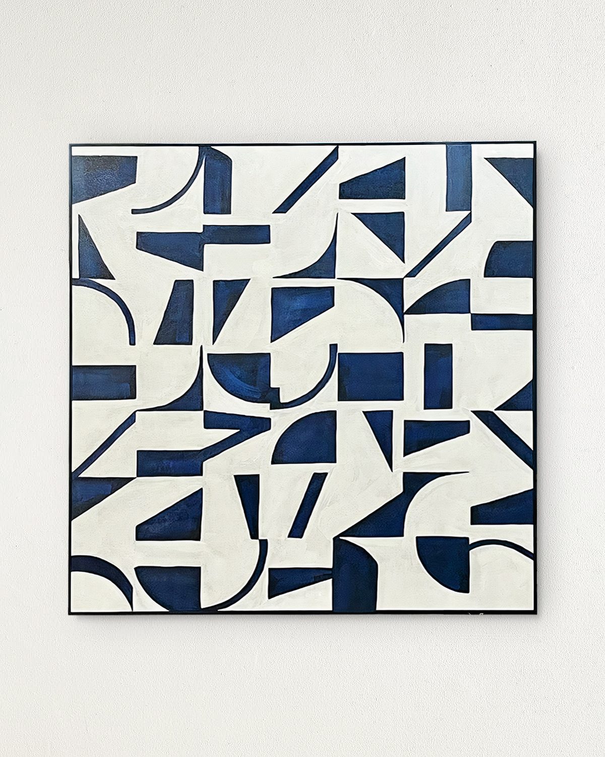 Картина в чёрной раме «Мейз» — это произведение абстрактного искусства, выполненное в стиле «Кубизм» состоящее из различных форм в тёмно-синем цвете, который придаёт ему особую атмосферу и выразительность. Сочетание глубокого синего оттенка и извилистых линий, закрученных в непредсказуемую симметрию, создают ощущение гармонии и в то же время игры, вызывая интерес. Эта картина станет стильным дополнением к любому интерьеру и впишется в современные жилые помещения или офис.