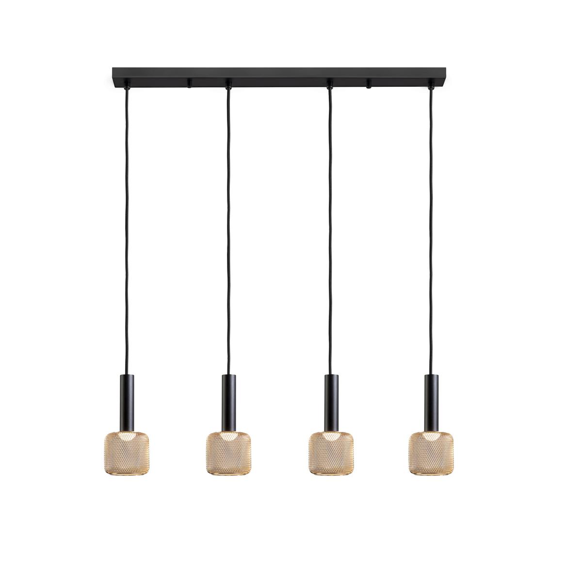 Светодиодная лампа на 4 света из матового черного металла и абажура из