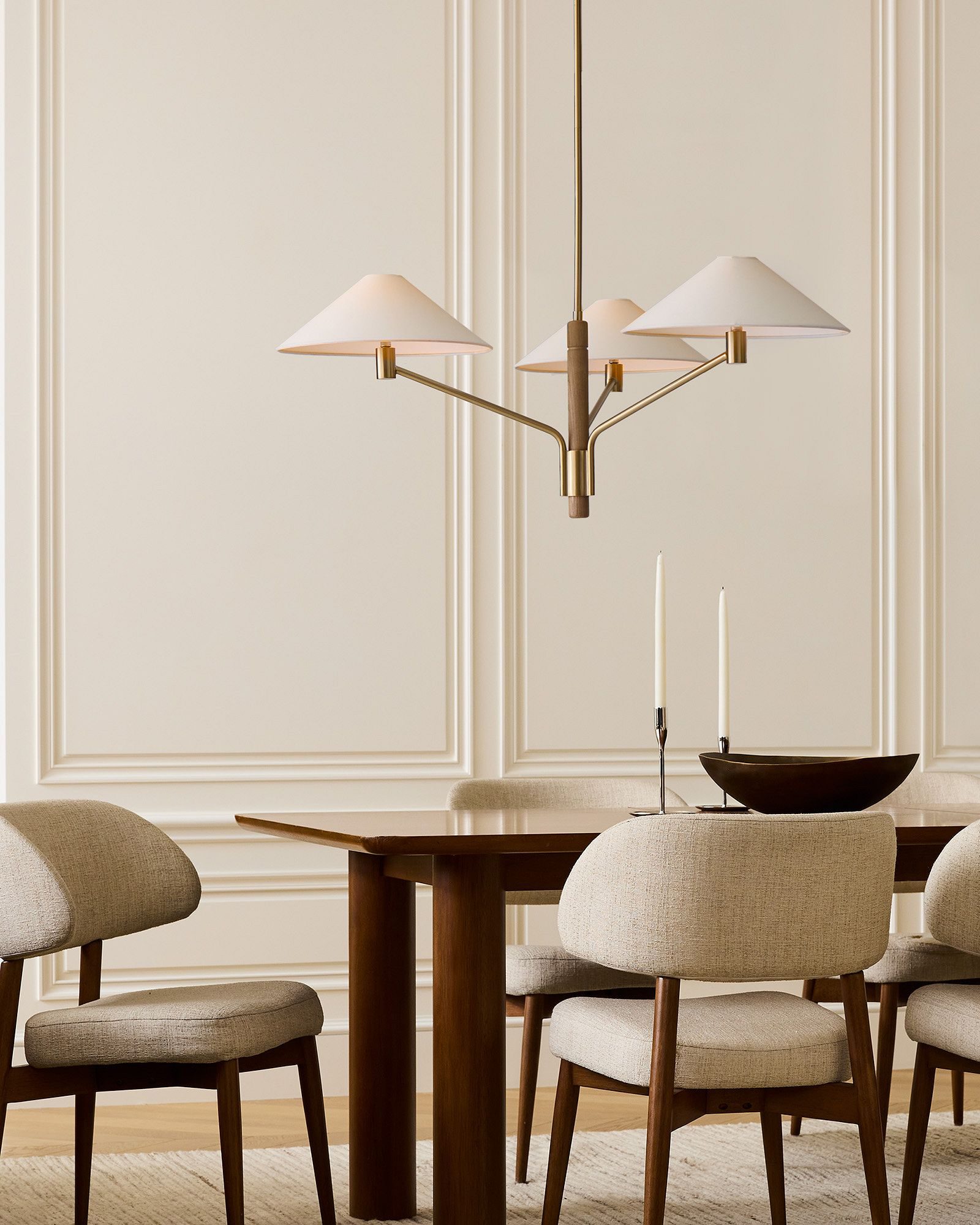 Люстра с тремя лампами «Валуа» — это сочетание и элегантность американского модерна, утонченность ар-деко и теплота натуральных материалов. Основание из брашированной латуни (гальваника) гармонично сочетается с элементами из натурального дуба, создавая ощущение визуального баланса и изысканности. Льняные абажуры белого цвета мягко рассеивают свет, придавая пространству уют и атмосферу спокойствия. Каркас выполнен из металла, что обеспечивает прочность и долговечность конструкции. Эта модель будет идеальным акцентом в современной обеденной зоне, гостиной, подчеркивая вкус и стиль владельца.