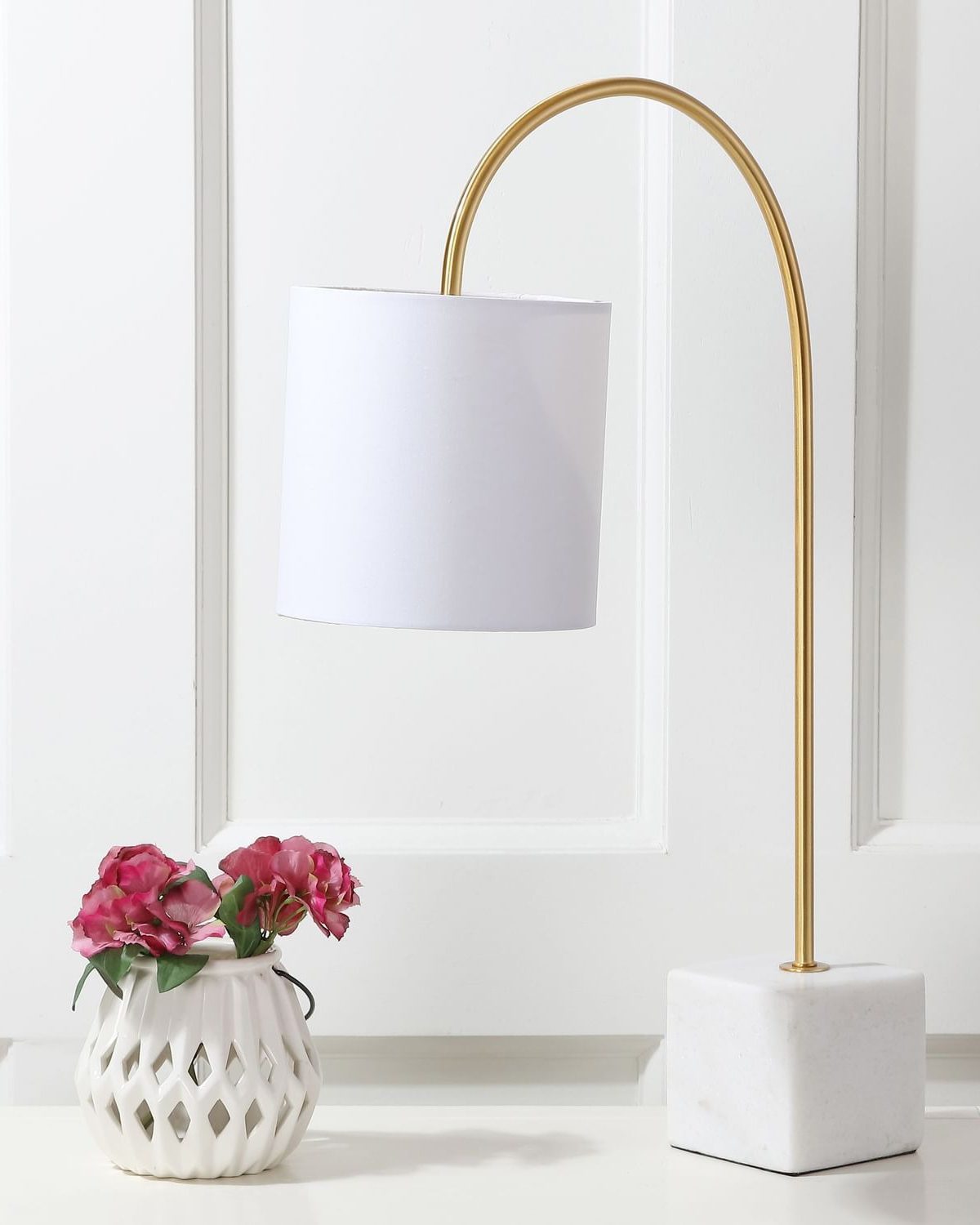 Эта современная настольная лампа «Гринвич» идеально подходит для освещения письменного стола или прикроватной тумбочки. Она представлена на мраморном основании с латунным горлышком и белым плафоном.