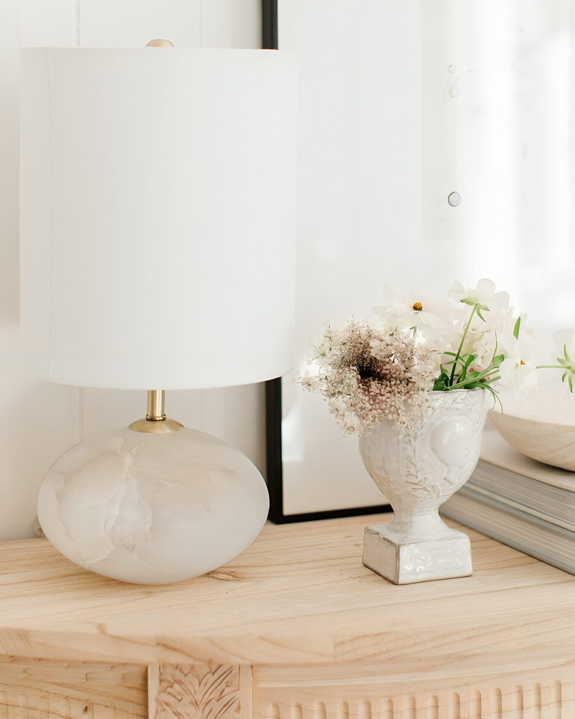 Настольная лампа «Помпеи» — это естественная текстура и форма в виде шара, которые придают ей неповторимый вид, привлекая к себе внимание и создавая приятную атмосферу. Основание лампы выполнено в карамельных и мягких серых тонах, которые прекрасно сочетаются друг с другом. Оно изготовлено из натурального камня — алебастр. Каждая лампа имеет свою индивидуальность и неповторимость, что делает ее особенной и эксклюзивной. Мягкое и безмятежное сияние света, рассеиваемое белым хлопковым абажуром, создает приятную атмосферу и расслабляющую обстановку. Лампа «Помпеи» подходит для комнаты любого стиля — от классического до современного. Она идеально дополнит шикарную тумбочку в спальне или станет изысканным украшением роскошного уголка для чтения в гостиной.
