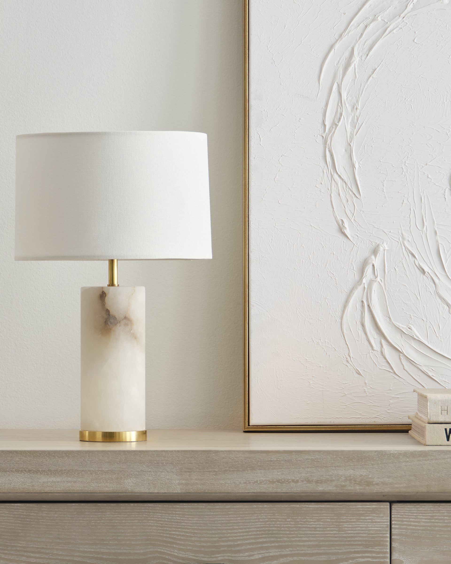 Настольная лампа «Прая» — это выполненная в изысканном американском стиле, в духе современной классики. Она станет элегантным акцентом в интерьере спальни, гостиной или кабинета, придавая пространству атмосферу уюта и благородной сдержанности. Основание лампы изготовлено из натурального алебастра — природного камня, известного своей мягкой фактурой и утончённой полупрозрачностью. Благодаря природному происхождению материала, каждая лампа имеет уникальный мраморный рисунок, что делает каждое изделие неповторимым. Тёплая латунная фурнитура гармонично сочетается с текстурой алебастра, а абажур из светлого текстиля мягко рассеивает свет, создавая комфортное освещение. Диаметр абажура в самом широком месте составляет 27 см, а общая высота лампы — 40,4 см. Модель «Прая» идеально впишется в интерьер, оформленный в стиле американская классика, и подчеркнёт утончённый вкус владельца.