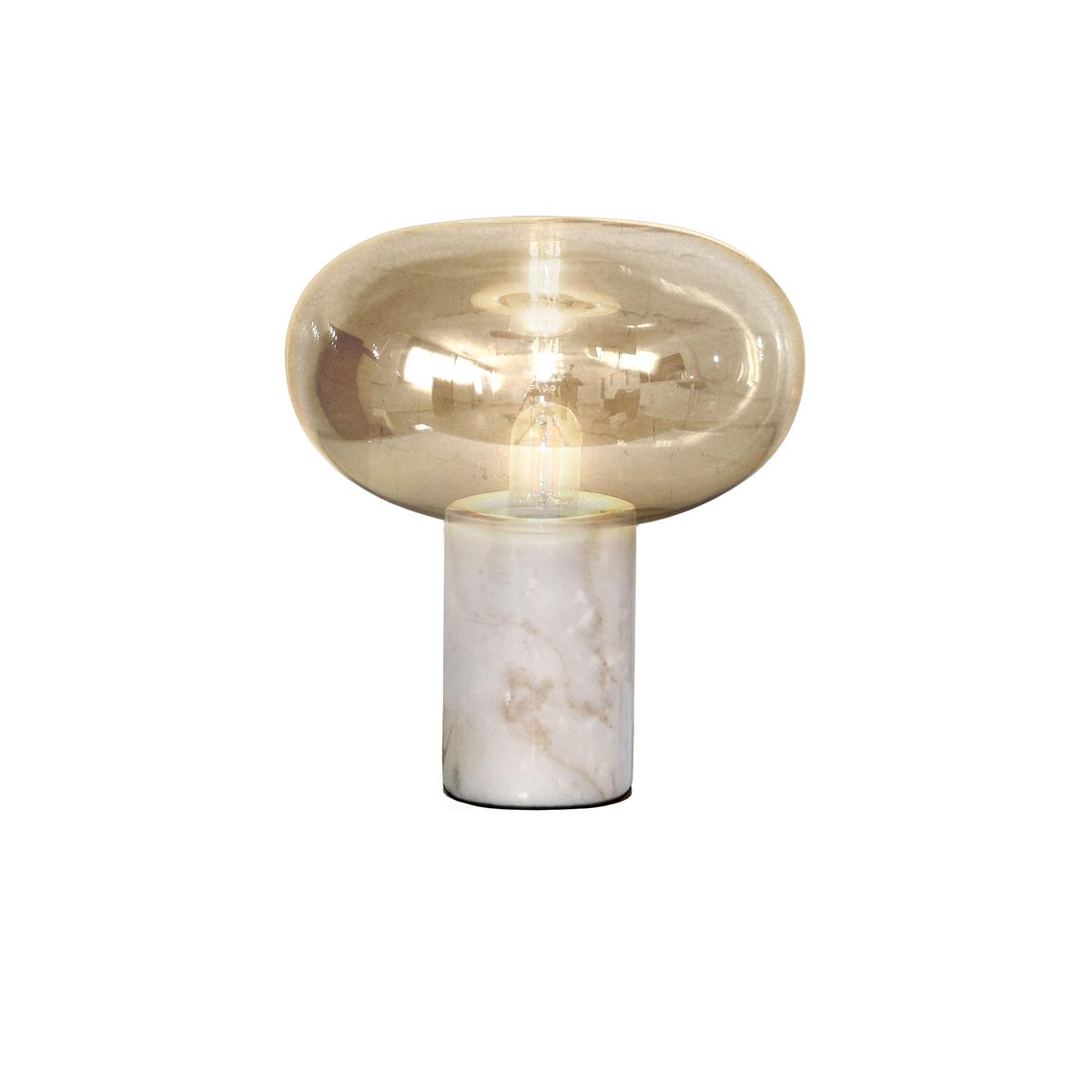 Настольная лампа 1 лампочка. Изготовлен из белого мрамора. Абажур из дутого стекла янтарного цвета.