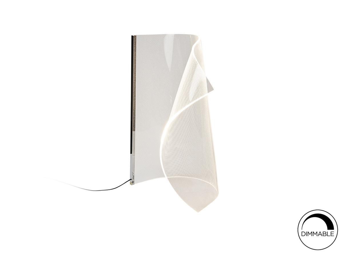 Настольная лампа состоит из листа формованного метакрилата с микропечатью и хромированной металлической кромки. Светодиодное освещение 10Вт 600лм 3000К. ДИММИРУЕМАЯ