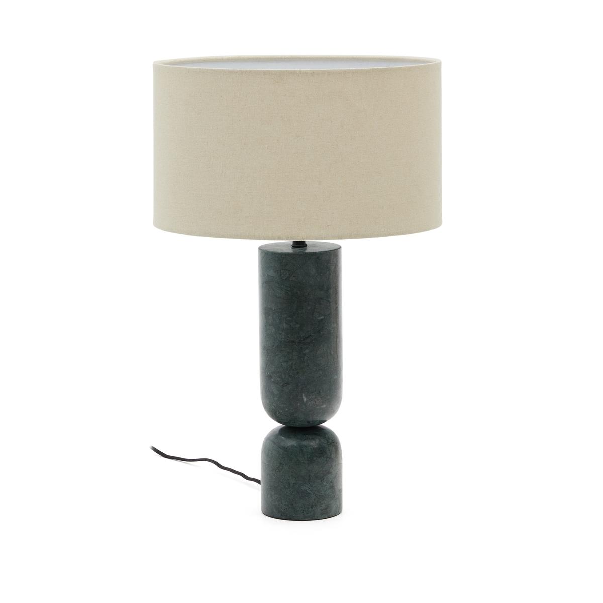 Настольная лампа Vex из зеленого мрамора с серым льняным абажуром