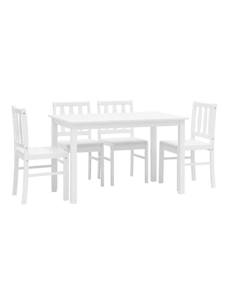 Комплект обеденный INGRID из стола и четырех стульев деревянные, ножки стола и каркас стульев из массива гевеи