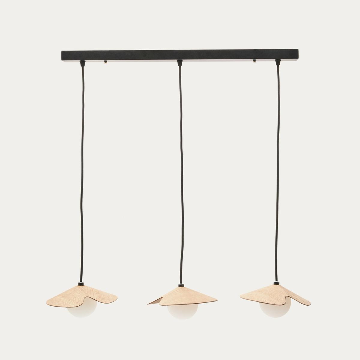Подвесной светильник из дуба Wilara с 3 белыми шарами из дымчатого стекла