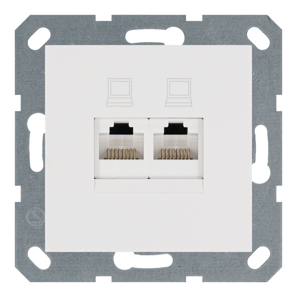 Розетка двойная компьютерная RJ45 cat 5 с накладкой — G (белый глянцевый)