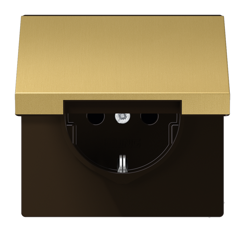 Розетка JUNG LS METAL, скрытый монтаж, с заземлением, с крышкой, латунь