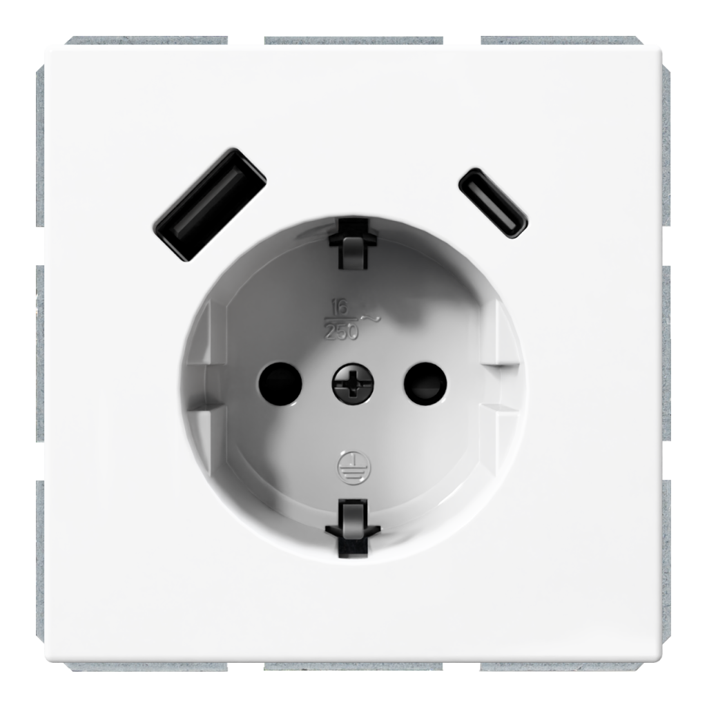 ГлавнаяРозетки и выключателиРозетки и выключатели JasmartРозетка SCHUKO® с зарядным USB-интерфейсом 25Вт (A+C) — FD (белый глянцевый)