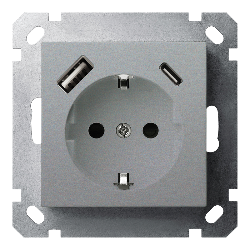 ГлавнаяРозетки и выключателиРозетки и выключатели JasmartРозетка SCHUKO® с зарядным USB-интерфейсом 25Вт (A+C) — G (алюминий — титан)