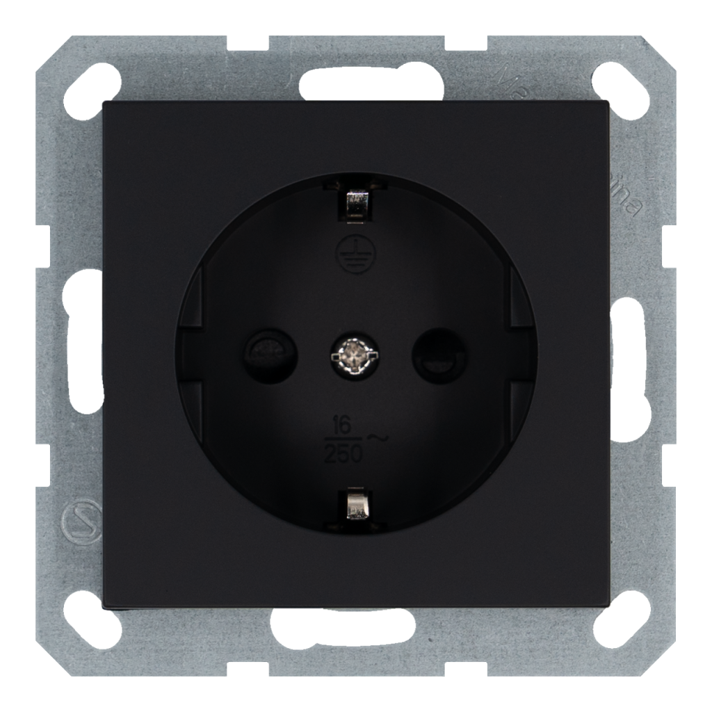 Розетка SCHUKO® 16A со шторками — G (черный матовый — soft touch)