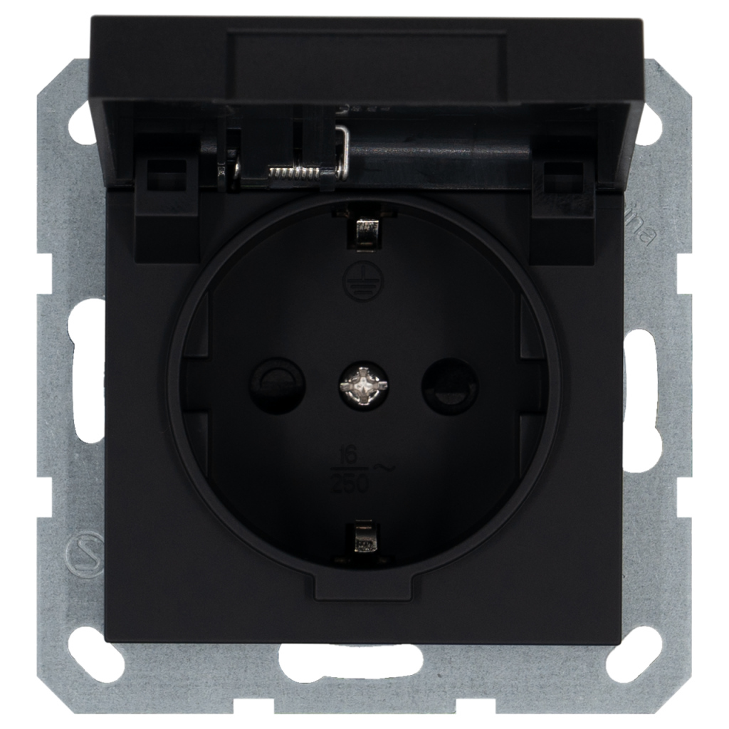 Розетка SCHUKO® 16A с крышкой и со шторками — G (черный матовый — soft touch)