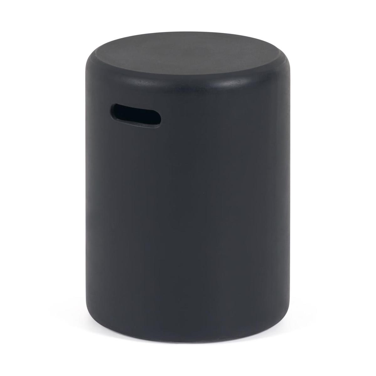 Столик Taimi полностью сделан из бетона. Он имеет цилиндрическую форму, литой и полый внутри. По бокам сделано две ручки в виде отверстий для удобного переноса.
