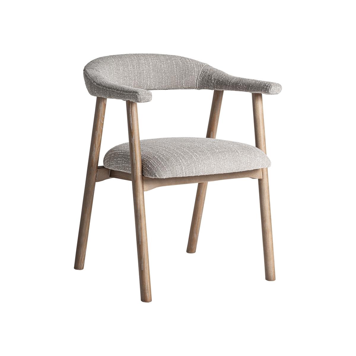 Стул Davrey в современном стиле, изготовлен из коричневого ясеня с натуральной отделкой в сочетании с серым полиэстером и поролоном.