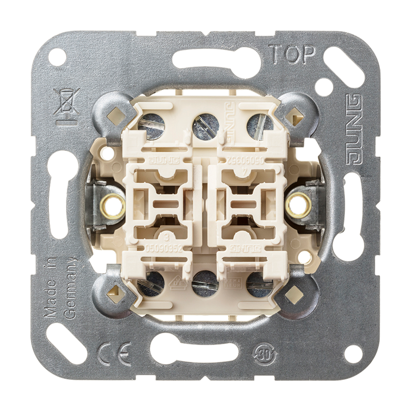 ГлавнаяРозетки и выключателиРозетки и выключатели JUNG509TU Выключатель 2-клавишный 10A проходной самовозвратный