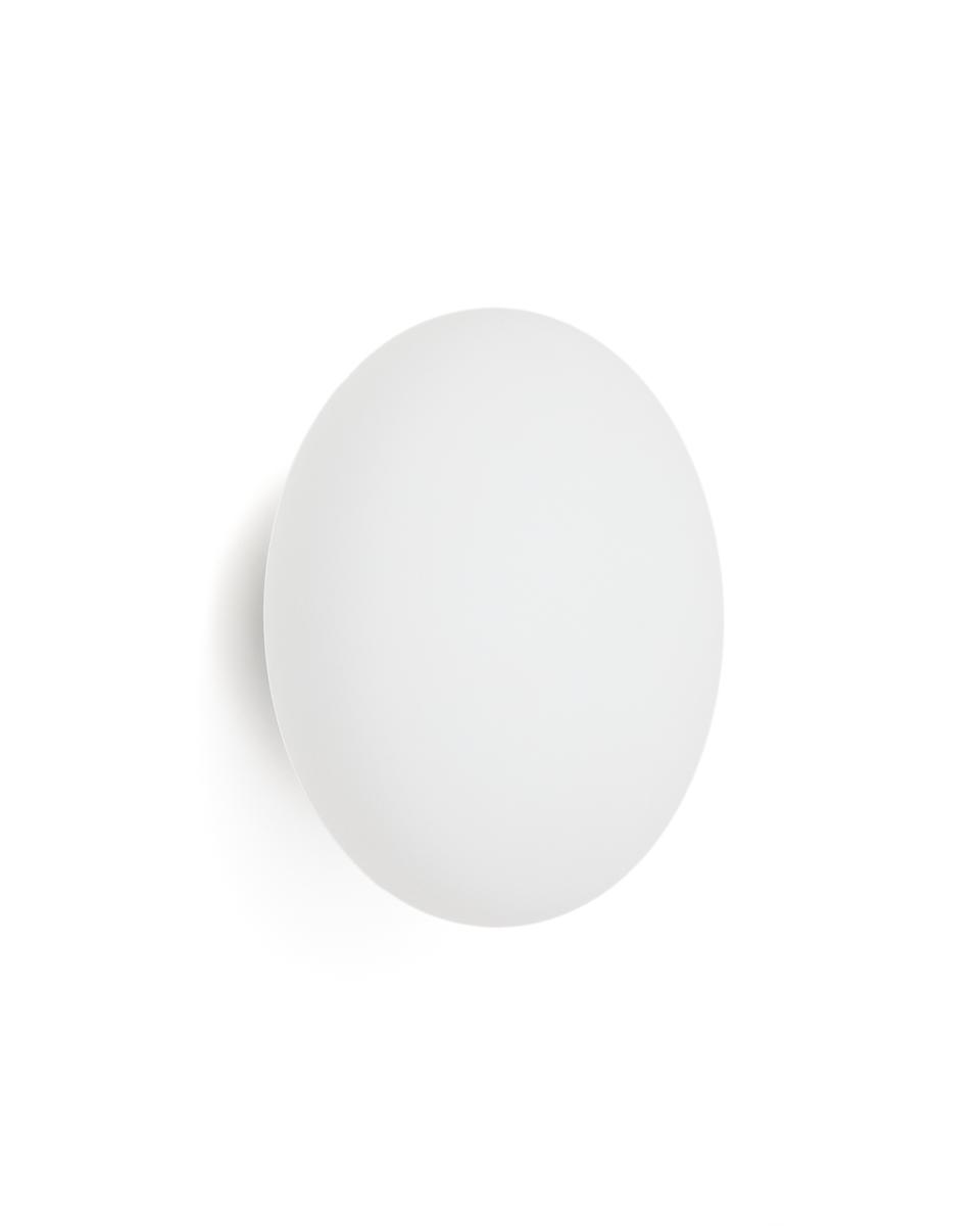 слегка овальная сферическая форма из дымчатого стекла излучает тёплый и мягкий свет, идеально