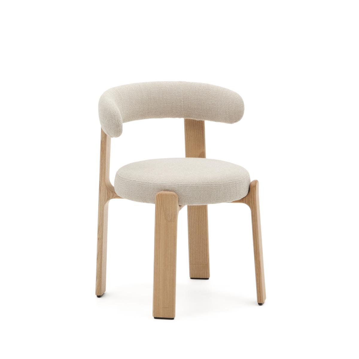 Granite Стул на 4 ножках из бежевого шенилла и массива ясеня в натуральной отделке